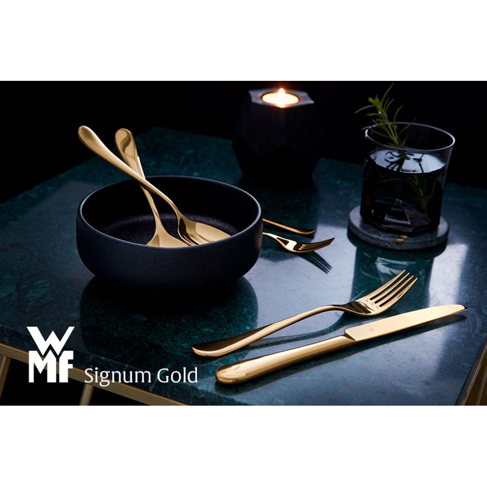 Linia Signum to elegancja która mówi sama za siebie. Klasyczna prostota z modernistycznym wykonaniem daje fantastyczny efekt dla oka. Metaliczne kolory są nakładane warstwa po warstwie w procesie znanym jako fizyczne osadzanie z fazy gazowej, PVD. PVD to technika, która wytwarza te dekoracyjne zmiany powierzchni, została pierwotnie opracowana dla przemysłu jubilerskiego. Nie tracą one swego blasku, nie wchodzą w reakcje z potrawami, a co za tym idzie są neutralne w smaku. Nawet po kilku latach użytkowania pozostają w świetnym stanie oraz posiadają nieskazitelny połysk.